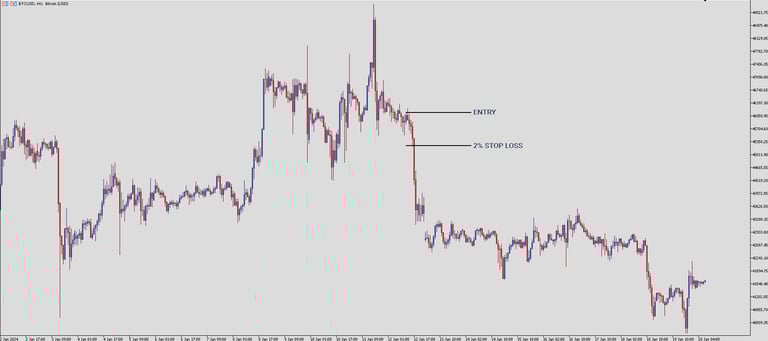 For example, if the trader buys a stock at $50 and decides to set a stop loss at 2% below the entry price, the stop-loss level would be $49. So, if the stock price falls to $49 or below, the stop loss would trigger, and the trader would exit the trade with a loss of $1.
