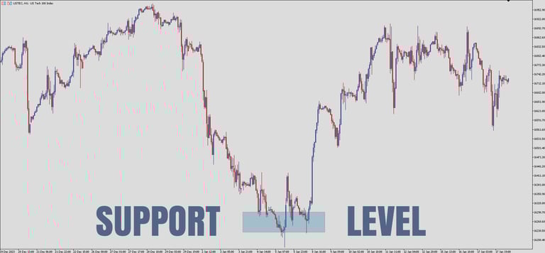 Below is a great example of a strong support zone on Tesla’s stock chart. The price couldn’t break through the support level and instead triggered a trend reversal. This is a classic example of how support levels can act as a safety net for traders, preventing further price declines and signaling potential buying opportunities.