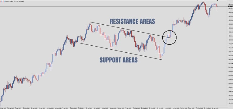 To put it in simple terms, breakout trading is about identifying critical levels of support and resistance on a chart and then opening trades when the price breaks through those levels. The main goal is to find those favorable spots in the market and seize the opportunities they present.