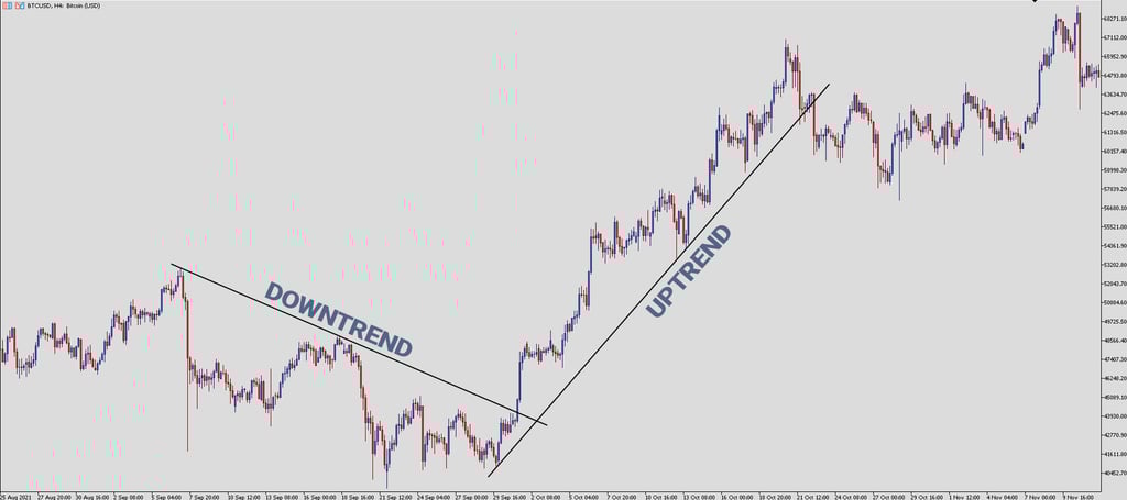 Trendlines are drawn on a chart to connect a series of highs or lows. They identify the direction of a trend and potential entry and exit points. A bullish trend is an uptrend, and a bearish trend is a downtrend.