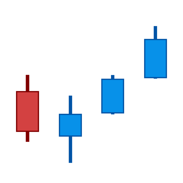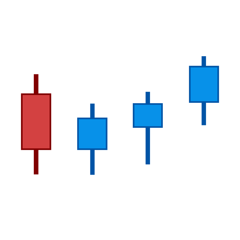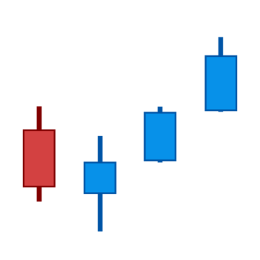 The three white soldiers pattern indicates that the bulls are gaining control of the market and that the downtrend is likely to end. This pattern is often seen at the bottom of a downtrend but can also occur after a period of consolidation. It consists of three consecutive green candles, each closing higher than the previous candle. The candles should have small upper and lower wicks, and the opening price of each candle should be within the body of the previous candle.