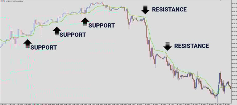 Moving averages are used to identify trends, support and resistance levels, and potential entry and exit points.