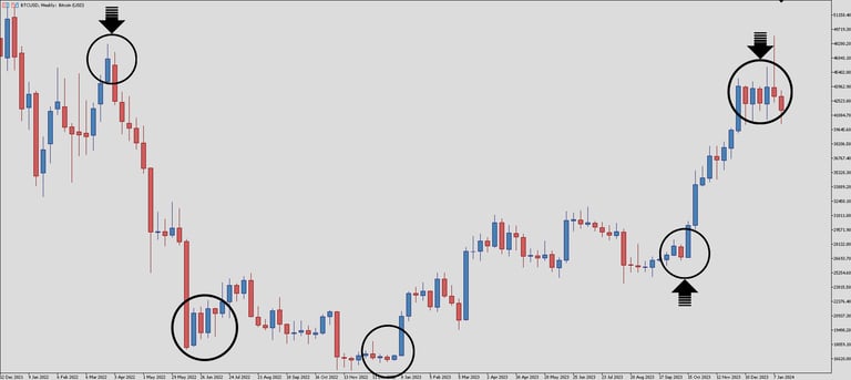 Swing Highs and Swing Lows, for Bitcoin 1-Week Chart