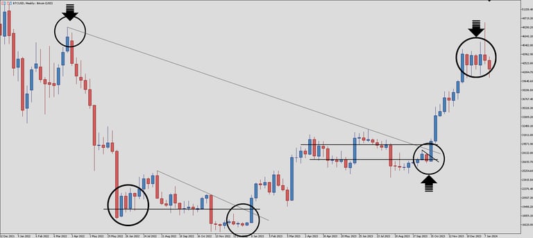 Resistance, Support, and Breakout Bitcoin 1-Week Chart