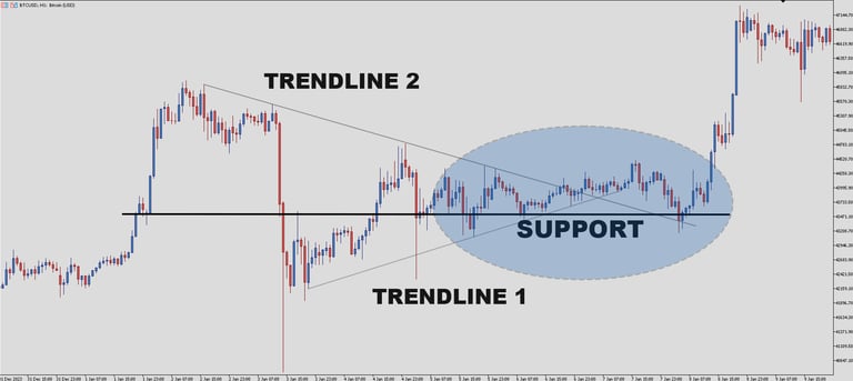 Trend, Resistance, Support, and Breakout Bitcoin 1-Hour Chart