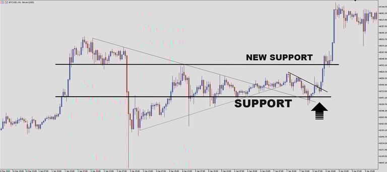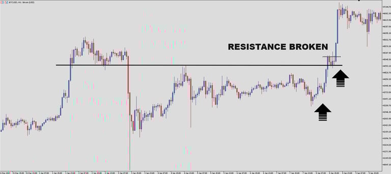 Resistance, Support, and Breakout Bitcoin 1-Hour Chart
