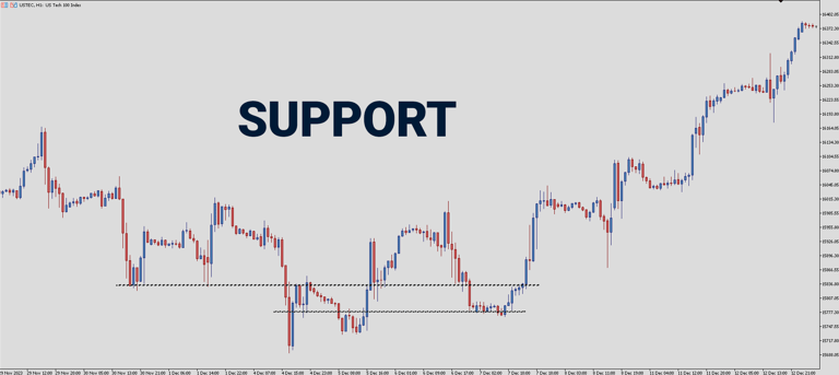 Support occurs where a downtrend is expected to pause due to a concentration of demand.